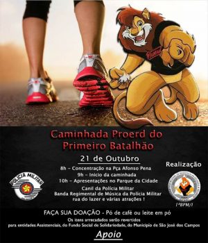 O 1º Batalhão de Polícia Militar do Interior em São José dos campos vai realizar no dia 21 de outubro a 1ª Caminhada Proerd (Programa de Resistência as Drogas e a Violência).