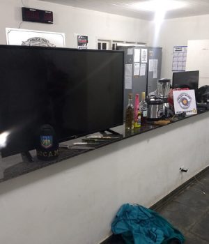 Foram recuperados 01 facão, 04 facas, 01 Tv 49 polegadas, 01 liquidificador, 1 panela elétrica, bebidas alcoólicas, 02 receptores de TV, vários produtos alimentícios, produtos de higiene, 01 dvd, 01 secador de cabelo, 01 capacete de motocicleta, 21 roupas de cama, além de 01 simulacro de arma de fogo que foi apreendido.