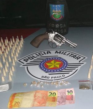 Os policiais também foram até a residência do terceiro indivíduo, de 20 anos e encontrou 126 pinos de cocaína e um revólver calibre .32.