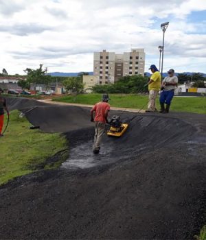 O novo espaço de lazer e esportes radicais em Pindamonhangaba continua em obras a todo vapor. Na última semana, a Prefeitura de Pindamonhangaba está finalizando a pavimentação na pista de Pump Track, ao lado da Pista de Skate, entre os bairros Quadra Coberta e Campos Maia.