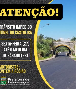 O trecho do túnel do bairro Castolira, em Pindamonhangaba está recebendo obras de recapeamento asfáltico. A Prefeitura Municipal informou que as obras seguem nesta sexta-feira (27) até o meio-dia de sábado (28).