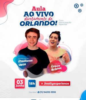 A aula será transmitida ao vivo pelo canal oficial da escola no YouTube, basta pesquisar por Really Experience. Por lá, a professora e atriz americana Grace Bristol, fará um passeio no mundo Disney e irá interagir com os adultos e crianças de forma lúdica e com atividades para aguçar o aprendizado do inglês. “Tanto os adultos, quanto as crianças terão a oportunidade de aprender algumas palavras e expressões em inglês do mundo infantil, enquanto brincam e interagem com a professora. Nossa proposta é auxiliar os pais nesse desafio e tornar esse período mais produtivo para os pequenos e adultos”, explica Édney Quaresma, CEO da Really Experience. Para ele, as crianças possuem maior facilidade de aprendizado e durante a quarentena essa é uma ótima oportunidade de entretê-los enquanto aprendem um idioma.