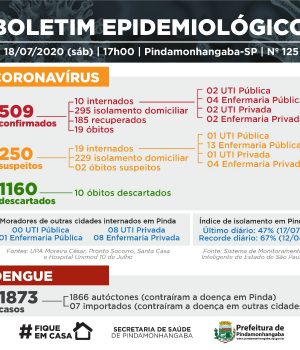 Os pacientes testados positivo são dos seguintes bairros: Maricá, Mombaça, Bela Vista, Vila São Benedito, Alto do Cardoso, Terra dos Ipês, Crispim, Maria Áurea e Centro. Além dos positivos, são mais 9 pacientes recuperados, dos bairros: São Benedito, Centro, Pasin, Santa Cecília, Cidade Jardim, Araretama e Vitória Vale. Com os números de hoje, Pinda chega a 509 pacientes testados positivos para coronavírus desde o início da pandemia na cidade.