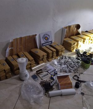 Após serem indagados, um dos indivíduos acabou confessando que haviam mais drogas escondidas no interior de uma residência próximo ao local da abordagem. Os policiais solicitaram apoio e se deslocaram até a residência, onde foram encontrados 140 tabletes de maconha, totalizando 138 kg da droga, além de 1 kg de skank, diversas drogas a granel entre pedras de crack, pinos de cocaína e porções de maconha, totalizando 2 kg, material utilizado para embalar drogas e R$ 14.760,00 em dinheiro. Também foi localizada uma motocicleta produto de roubo.