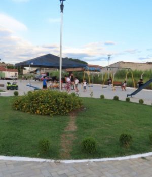O local contempla amplo espaço com piso intertravado, nove postes com iluminação LED, oito bancos, playground com balança, gangorra, escorregador e labirinto e uma área de jardinagem e gramado.