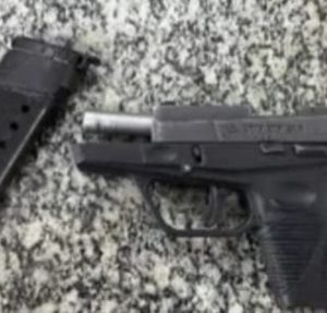 Durante a fuga o suspeito dispensou uma Pistola da marca Taurus, calibre .40, municiada com 6 cartuchos intactos, esse modelo de armamento é de uso restrito.