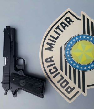 Por volta das 10h desta segunda-feira (29), a Polícia Militar de Pindamonhangaba apreendeu um simulacro de arma de fogo com dois menores no interior de uma escola no Parque São Domingos.