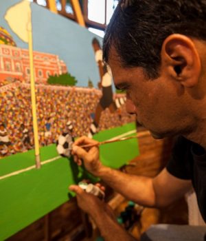 A mostra, que retrata o mundo do futebol por meio da arte naïf do artista cearense Alemberg Quindins, segue para Piracicaba após a passagem por São José.