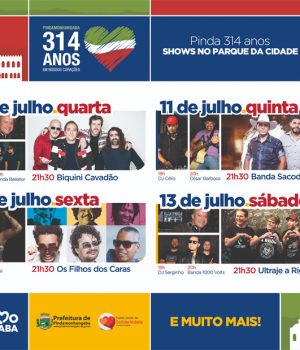Quem ainda não conseguiu garantir seu ingresso para os shows dos 314 anos de Pinda no Parque da Cidade terá uma ótima oportunidade neste sábado (6): haverá dois postos de troca de ingressos por alimentos, um na Praça Monsenhor Marcondes e outro no Parque da Cidade.
