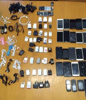 Ao verificarem seu conteúdo, encontraram 55 aparelhos de telefone móvel com 42 carregadores com fone, 48 fones de ouvido, 13 cabos USB, 11 baterias extras e 6 chips para celular. Na bolsa, havia ainda 16 porções de maconha, que somavam 3,127 quilos da erva.