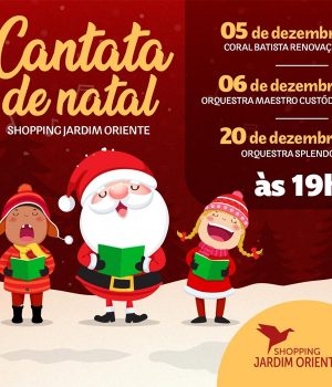 O Shopping Jardim Oriente de São José dos Campos preparou uma programação musical, a “Cantata de Natal” para o mês de dezembro. Coral e orquestra apresentarão as tradicionais músicas natalinas que encantam as pessoas durante as festividades de fim de ano.