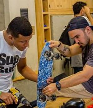 Na oficina será apresentado um processo de reciclagem de plástico em pequena escala, unindo tecnologia de ponta e cultura Maker. Na sequência, com placas de plástico pré produzida, será riscado o formato do shape, cortado com serra tico tico, feito acabamento com esmerilhadeira e, finalmente, montados cinco skates que serão sorteados entre os participantes.