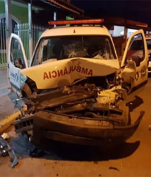 A ambulância ficou com a frente completamente destruída. No carro que estava estacionado não havia ninguém no momento da colisão.