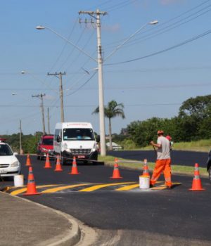 Simultaneamente, o Departamento de Trânsito vem executando a pintura de sinalização de trânsito como faixa de pedestre e sinalização em lombadas.