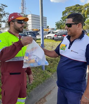 Para garantir que os caminhoneiros e condutores que trabalham nos serviços essenciais, possam se manter devidamente preparados na atividade de trabalho, o Grupo CCR distribui diariamente mais de 1 mil kits de alimentação e higiene, composto por garrafas d’água e sucos, barras de cereal, biscoitos, torradas, paçocas, doce de banana e amendoim. Além disso, o kit também contém escova e pasta de dente, papel higiênico e sabonete/xampu.