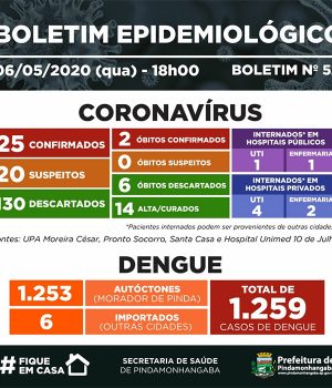 A Vigilância Epidemiológica, da Secretaria de Saúde da Prefeitura de Pindamonhangaba, divulgou, na tarde desta quarta-feira (6), mais um caso testado positivo para Covid-19 em Pindamonhangaba. Agora, Pinda conta com 25 casos confirmados. A paciente é uma mulher de 35 anos, profissional de saúde, que está em isolamento domiciliar e passa bem. Ela deu entrada na rede pública de saúde.