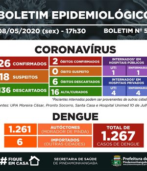 A Vigilância Epidemiológica, da Secretaria de Saúde da Prefeitura de Pindamonhangaba, divulgou, na tarde desta sexta-feira (8), mais um caso testado positivo para Covid-19 em Pindamonhangaba. Agora, Pinda conta com 26 casos confirmados.