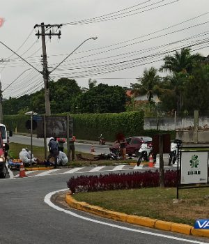 Na manhã desta quinta-feira (4), um motociclista ficou ferido após se envolver em um acidente com um carro de passeio, na rotatória do Socorro, em Pindamonhangaba.