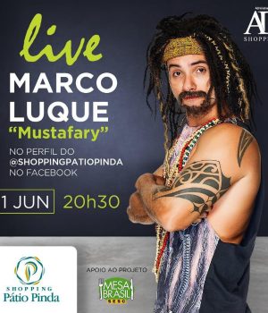 Embalado pela boa energia de Mustafary e o seu amor pelo Serumaninho, Marco Luque promete garantir bons momentos de alegria e descontração em sua apresentação. A live será transmitida a partir das 20h30, na página do Facebook do shopping: facebook.com/PatioPinda.