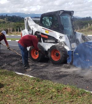 A empresa Land Vale, responsável pelas obras de recapeamento asfáltico no município realizou, nesta segunda-feira (30), reparos no pavimento do Anel Viário.