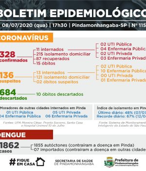 A Vigilância Epidemiológica da Secretaria de Saúde da Prefeitura informa no boletim desta quarta-feira (8), que a cidade conta com mais 15 pessoas testadas positivo para coronavírus, e 12 recuperados.