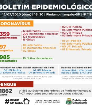 Importante destacar que mesmo com o anúncio apenas de recuperados, na data de hoje, não significa que não há mais casos em Pindamonhangaba, mas sim, que as instituições não enviaram seus relatórios de pacientes positivos para a VE neste domingo.