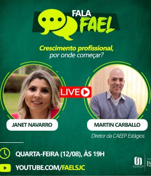Durante este período de distanciamento social, a Faculdade FAEL SJC (Faculdade Educacional da Lapa), promove uma live nesta quarta-feira (12), às 19h, com o objetivo de compartilhar conhecimento sobre o mercado de trabalho e fornecer um conteúdo de qualidade para os alunos e para o público em geral.
