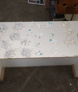 Quando os servidores abriram a mochila encontraram 222 invólucros de maconha, com peso total de 764 gramas e 35 invólucros de cocaína, pesando 172 gramas. Também foram apreendidos 2 aparelhos celulares com 2 baterias e 2 carregadores.