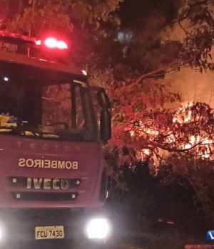 Na noite desta segunda-feira (31), um incêndio de grandes proporções atingiu uma área de mata no bairro Campo Belo, em Pindamonhangaba. Não houve feridos.