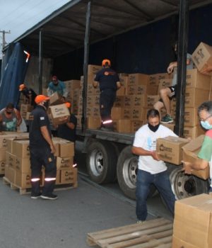 “Gostaríamos de agradecer os empresários que doaram a carreta para buscar as cestas em São Paulo, também a empilhadeira e seu transporte para o descarregamento no ginásio Juca Moreira. Sem essas colaborações nada disso seria possível”, destacou.