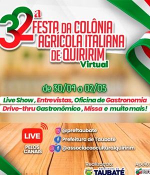 Tem início no próximo dia 30 a tradicional Festa Italiana de Quiririm. A 32ª edição do evento terá um formato bem diferente, a programação cultural será toda on-line e as massas serão vendidas antecipadamente e entregues pelo sistema drive-thru.