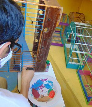 O trabalho de pintura e reconfiguração das gaiolas foi levado para o sistema prisional por intermédio de Marcia Toledo, representante do Conselho da Comunidade à frente do projeto. “As gaiolas são transformadas para serem usadas como decoração para colocar frutas para os pássaros virem e irem. Exatamente o oposto daquilo que elas foram construídas”, explica. “Os presos estão ‘desengaiolando’, mudando o contexto de aprisionamento para liberdade”, poetiza Marcia.
