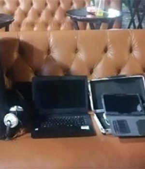 No local foram apreendidos equipamentos de som, três notebooks, um tablet, três máquinas de cartão, bem como R$ 634, e exames periciais foram solicitados ao Instituto de Criminalística (IC).