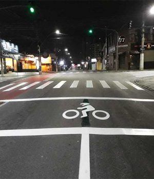 As equipes da Secretaria de Mobilidade Urbana (Semob) continuam os trabalhos de implantação em novos pontos da avenida Independência, que já recebeu algumas faixas de retenção.