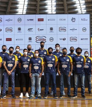 Na sequência foram apresentados os membros da Comissão Técnica, assim como os 11 atletas que integram o elenco da equipe, entre eles, o experiente levantador Marlon, 43 anos, campeão mundial com a Seleção Brasileira: