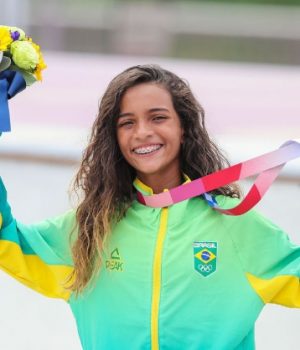 “Saber que muitas meninas já me mandaram mensagem no Instagram falando que começaram a andar de skate ou os pais deixaram andar de skate por causa de um vídeo meu, eu fico muito feliz porque foi a mesma coisa comigo. Minha história e a história de muitas outras skatistas que quebraram todo esse preconceito, toda essa barreira de que o skate era só para menino, para homem, e saber que estou aqui e posso segurar uma medalha olímpica, é muito importante para mim”, concluiu.