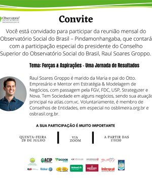 A reunião irá contar com a participação especial do empresário e mentor em Estratégia e Modelagem de Negócios e presidente do Conselho Superior do OSB, Raul Soares Groppo. O especialista irá abordar o tema: Forças & Aspirações – Uma Jornada de Resultados.