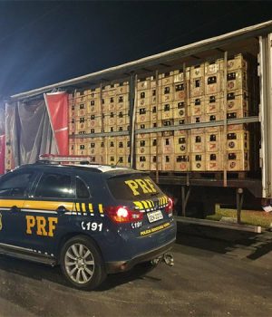 A Polícia Rodoviária Federal apreendeu, na noite dessa terça-feira (24), um carregamento de cachaça que saiu da capital paulista com destino à cidade mineira de Boa Esperança. No caminhão havia 900 caixas, contendo 10.800 garrafas de 965 ml de cachaça conhecida no mercado, sem qualquer comprovante fiscal de origem.