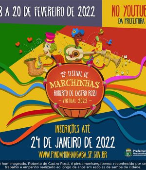 A iniciativa da Prefeitura, por meio da Secretaria de Cultura, busca resgatar e divulgar a tradição das marchinhas de carnaval e incentivar a criatividade dos compositores populares de todo o país. Nesta edição o Festival leva o nome de Roberto de Castro Rossi, pindamonhangabense, reconhecido no meio cultural por seu trabalho e empenho realizado ao longo de anos em escolas de samba de Pindamonhangaba. A diretora de Cultura, Rebeca Guaragna, destaca a tradição do evento. “O Festival de Marchinhas se tornou tradição em nosso município. Muito esperado por todos, o Festival reúne grandes compositores e intérpretes de nossa região, além de toda uma torcida formada por grupos de familiares e amigos que tanto trazem alegria ao evento.”