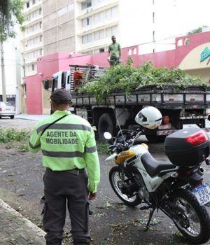 Cerca de 50 servidores da Prefeitura atuaram diretamente no trabalho de desobstrução de ruas e avenidas, onde houve queda de árvores e galhos. Foram 48 ocorrências desde a noite de quarta-feira. Não houve vítimas.