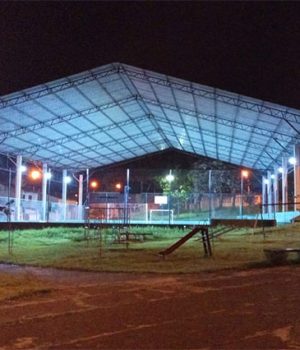 Outro bairro beneficiado foi o Ouro Verde, onde foi realizada a revitalização com substituição de todas as luminárias por refletores de 400w LED na quadra coberta do bairro, trazendo mais segurança e melhores condições para a prática esportiva e de lazer.