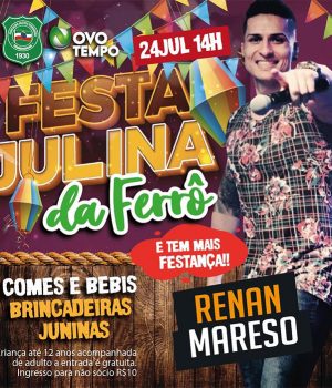 Devido ao grande sucesso da Festa Junina, a Associação Atlética Ferroviária realiza no domingo, dia 24, a Festa Julina.