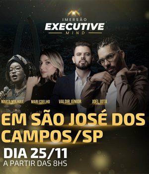 A “Imersão Executive Mind” será o primeiro e maior evento imersivo de treinamento do Vale do Paraíba e será realizado no dia 25 de novembro a partir das 8h, no Ginásio de Eventos do Shopping Jardim Oriente, em São José dos Campos. O estacionamento é gratuito.