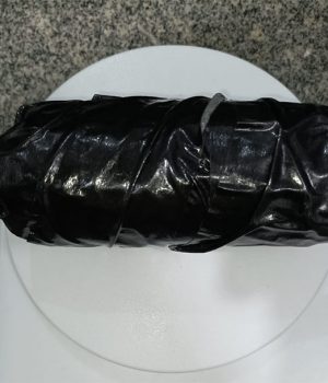 Ao ser questionada, ela confessou que estava portando drogas e, em local reservado, retirou um invólucro do corpo contendo cerca de 60g de suposta maconha, 41g de suposto haxixe, folhas de seda e uma anotação.