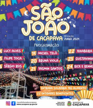 A Prefeitura de Caçapava, por meio da Secretaria de Cultura e Turismo, definiu a programação de shows do Festival São João de Caçapava 2024.