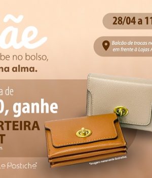 De 28 de abril a 11 de maio, os clientes que realizarem R$250,00 em compras nas lojas participantes poderão trocar seus cupons fiscais por 1 (uma) Mini Carteira Multislot (porta-cartões), disponível em cores variadas e limitada a 1 unidade por CPF, enquanto durarem os estoques.