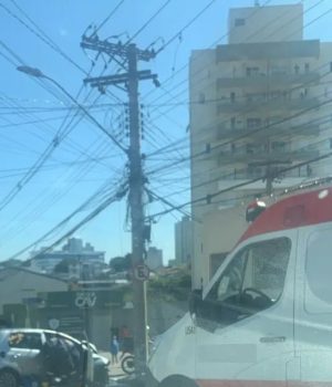 Um motorista bate com o carro contra um poste na avenida Pedro Alvares Cabral, no bairro Jardim Paulista, próximo ao número 521, na região central de São José dos Campos, interior de São Paulo, o SAMU (Serviço de Atendimento Móvel de Urgência) foi chamado para socorrer o motorista, o acidente aconteceu na tarde deste sábado (31).